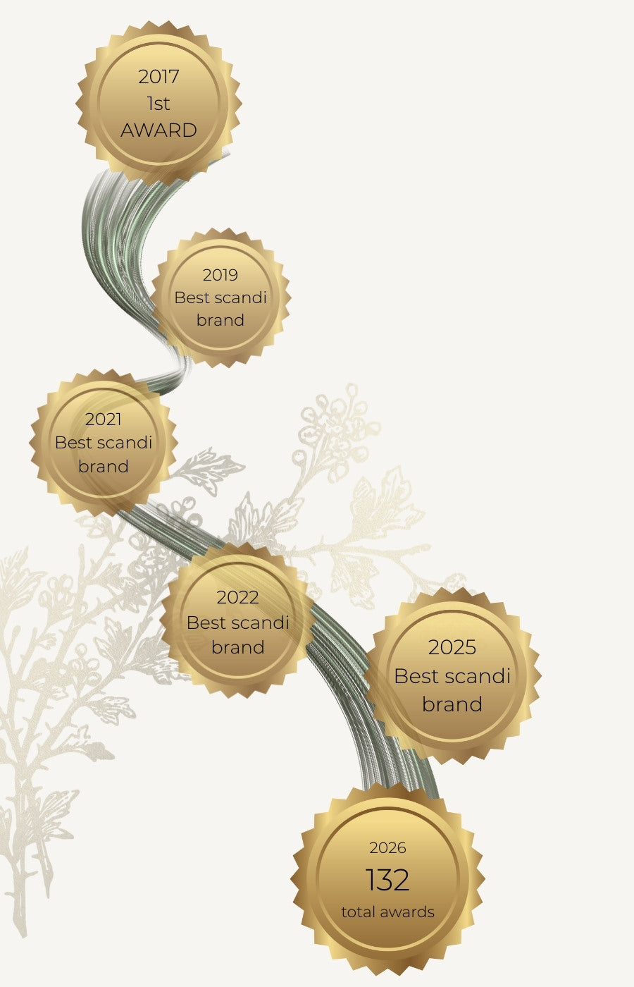 År 2019, 2021, 2022 och 2025 vann vi priset för "Bästa naturliga/ekologiska varumärke - Skandinavien" i Beauty Shortlist Awards, vilket också är den mest berömda prisutdelningen inom ekologisk hudvård i världen! De sa följande om oss: